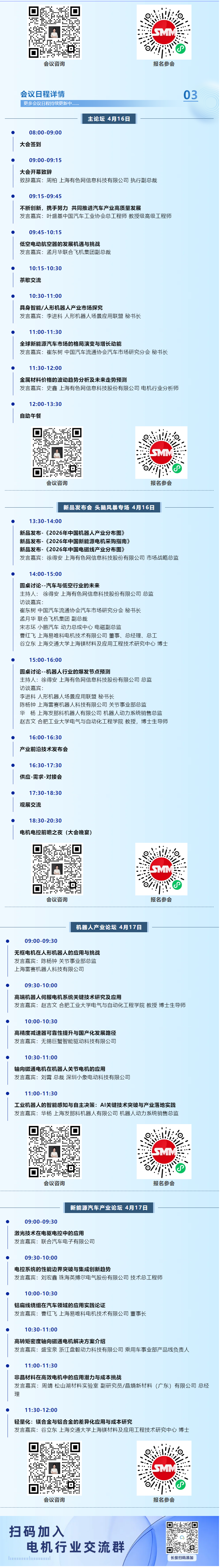 如今,4月16-17日在上海·嘉定喜来登酒店召开的SMM IEMC(第5届)2026电机电控产业前瞻大会聚集300+行业从业者、200+相关企业、众多权威专家及知名企业代表,聚焦三大赛道,供需精准对接。