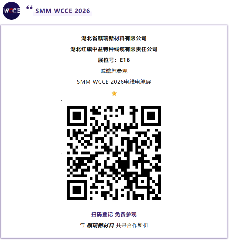 2026年5月14-15日,中国・苏州国际会议酒店,欢迎各界朋友莅临展会现场,走进湖北省麒瑞新材料有限公司&湖北红旗中益特种线缆有限责任公司(E16)的展位,近距离感受线缆铜材标杆企业的技术实力与产品魅力,共寻合作新机,共启产业新篇。