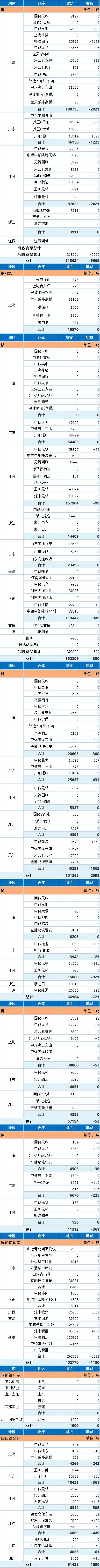 11月6日上海期货交易所金属库存日报
