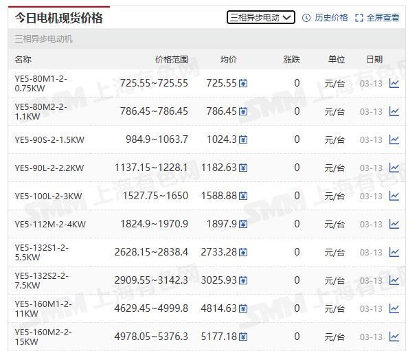 想知更多三相异步电动机、变频电机、直流有刷电机、扁平电机、减速电机、线性电机、空心杯电机、电机铁芯等各种型号含税的周度价格,敬请点击查看SMM电机专区(https://hq.smm.cn/electric-machinery)。