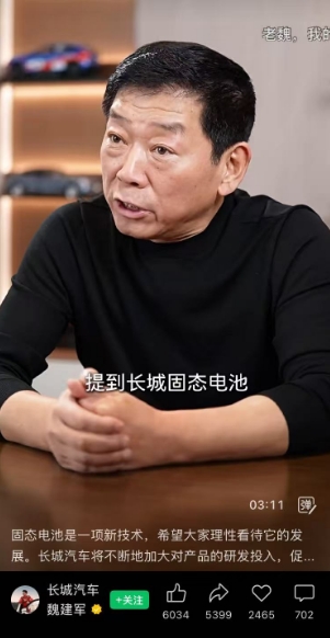 在新能源汽车行业对固态电池的期待日益高涨的当下,长城汽车董事长魏建军近日的一番表态,为市场热度注入了一剂清醒剂。2026年3月18日,魏建军通过视频明确表示,长城汽车的固态电池技术仍处于技术开发和验证阶段,真正具备商业价值并实现装车应用至少还需要五年时间。这一观点与当前部分车企高调宣传的“2026年固态电池上车”形成鲜明对比。
