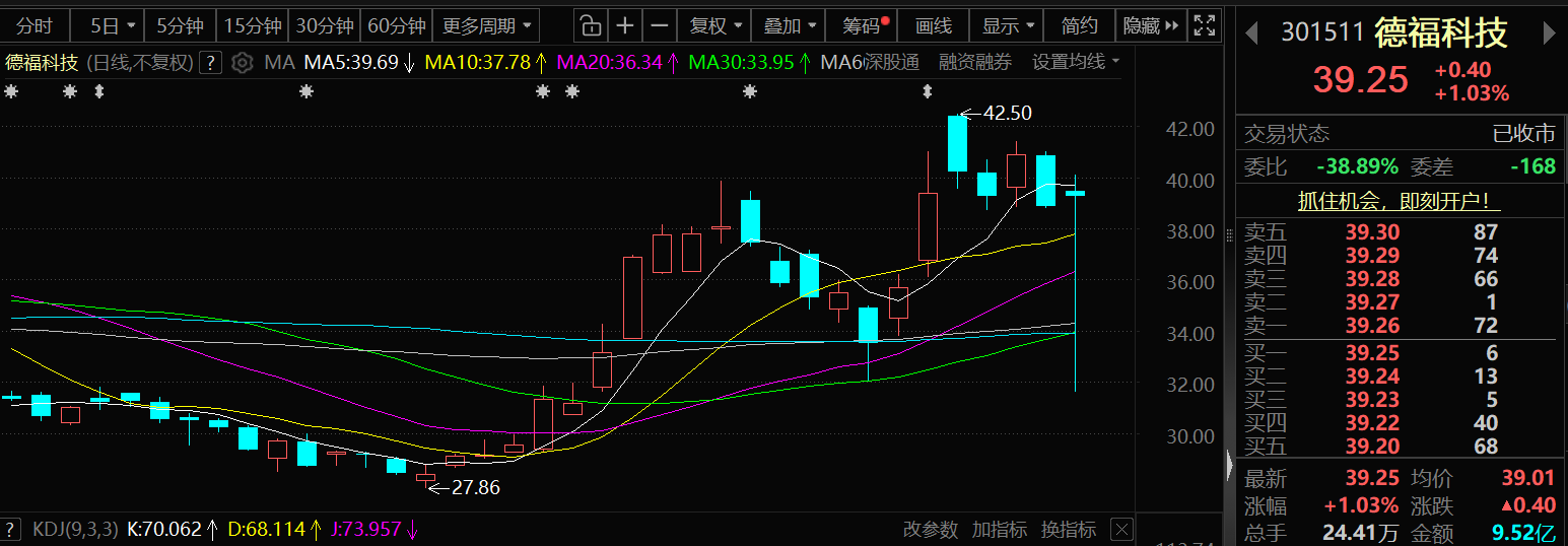 3月18日,德福科技股价出现上涨,截至18日收盘,德福科技涨1.03%,报39.25元/股。