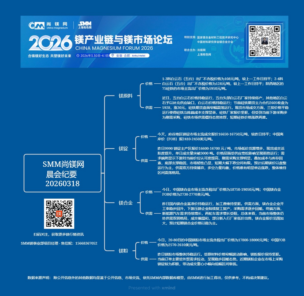 SMM 3月18日镁晨会纪要: