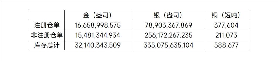 2026年3月17日COMEX金属库存