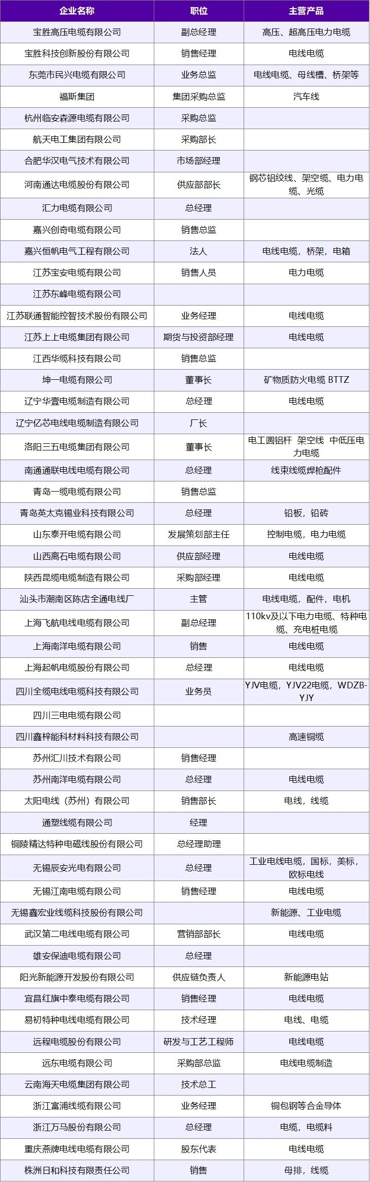 为了方便到场嘉宾提前梳理资源、高效规划现场对接事宜,我们梳理了本届展会【首批线缆厂+终端企业供需名单】,覆盖常规线缆、特种线缆、工程配套等常用供需场景,方便大家提前锁定意向合作方,现场沟通不盲目。
