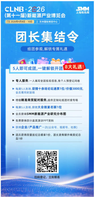 CLNB 2026(第十一届)新能源产业博览会定于2026年4月8日-10日在苏州国际博览中心隆重举办。 本届展会由上海有色网信息科技股份有限公司(SMM)主办,将全面覆盖动力电池、储能系统、上游原料、先进材料、智能制造装备、矿业资源及电池循环再生等新能源全产业链环节,为您呈现升级版的一站式产业交流与采购平台。