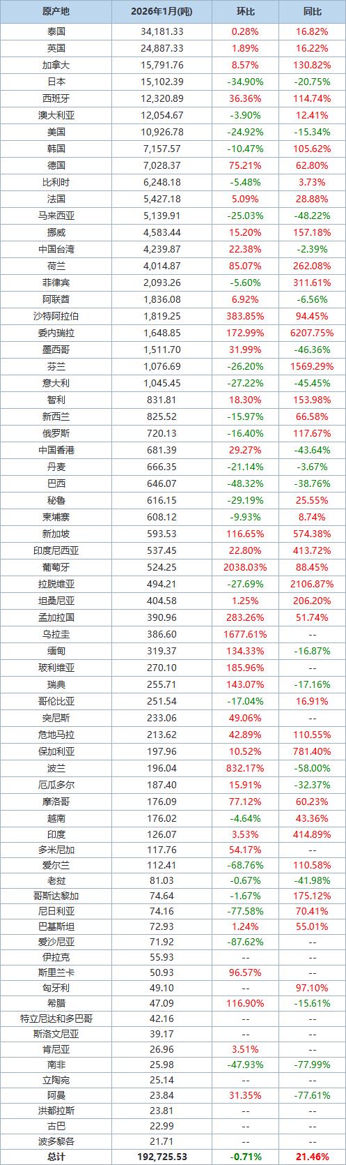 注:进口/出口总量(总计)中亦包括上表未列出的部分原产地数据