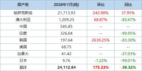 以下为根据中国海关总署官网数据整理的2026年1月精炼锌进口分项数据一览表: