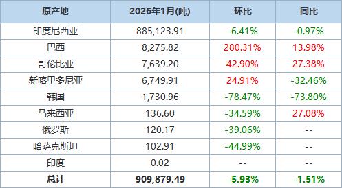 印度尼西亚是第一大进口来源地,当月从印度尼西亚