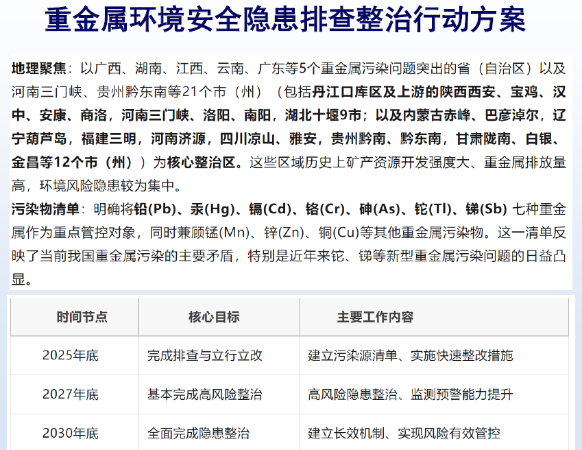 重金属环境安全隐患排查整治行动方案(2025—2030年)