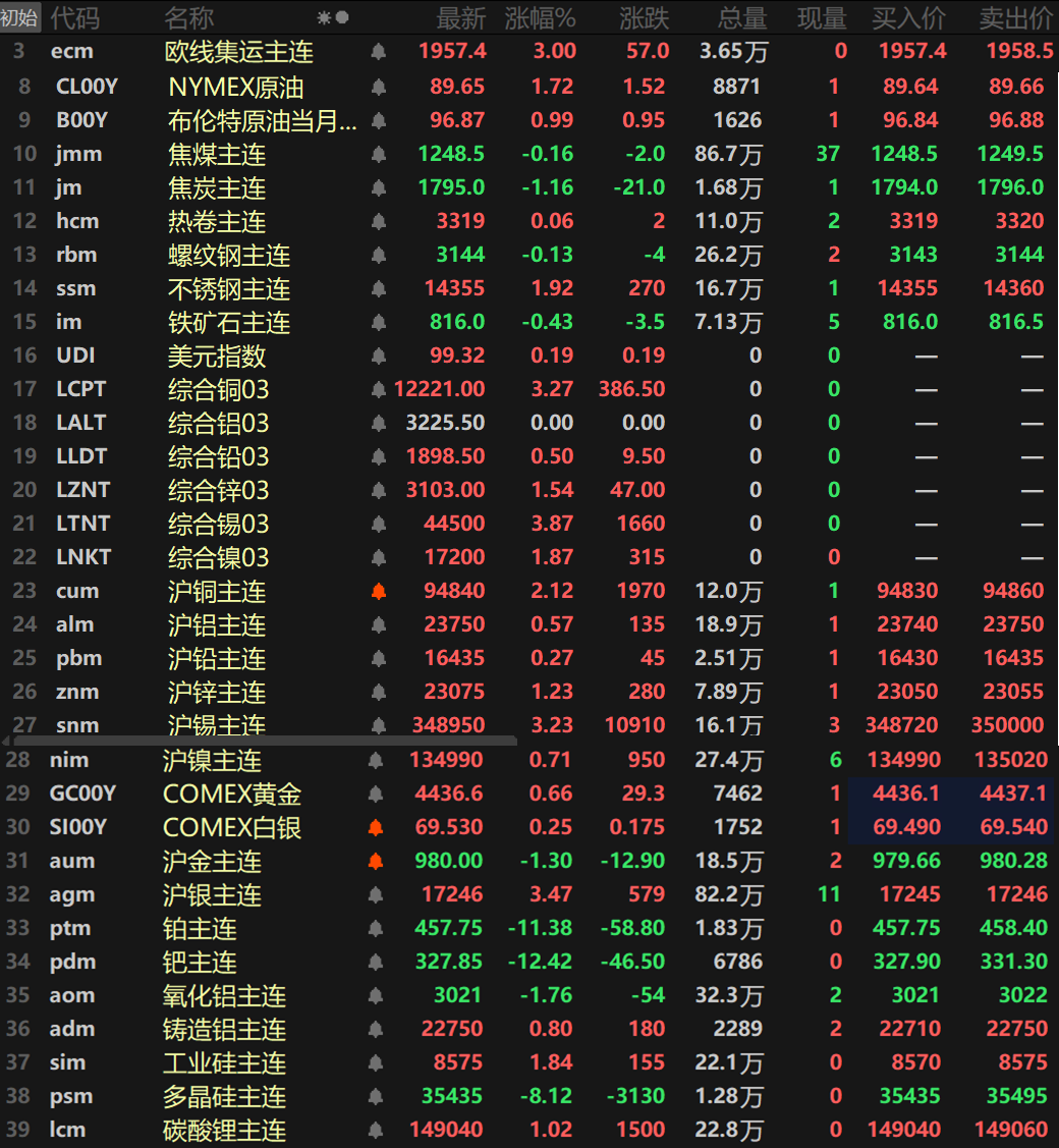 金属市场方面: