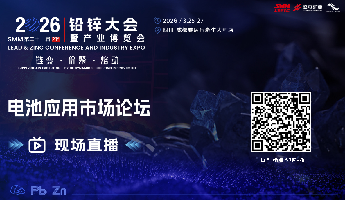 3月25日-3月27日,由上海有色网信息科技股份有限公司(SMM)主办的2026 SMM(第二十一届)铅锌大会暨产业博览会在四川·成都·成都雅居乐豪生大酒店隆重召开!