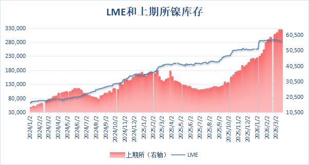 以下为2026年3月以来LME和上期所镍库存数据:(单位:吨)