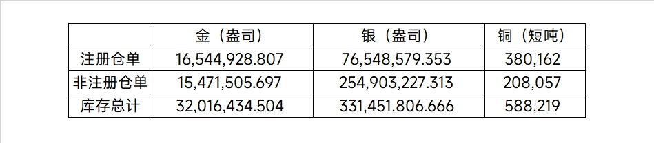 2026年3月23日COMEX金属库存