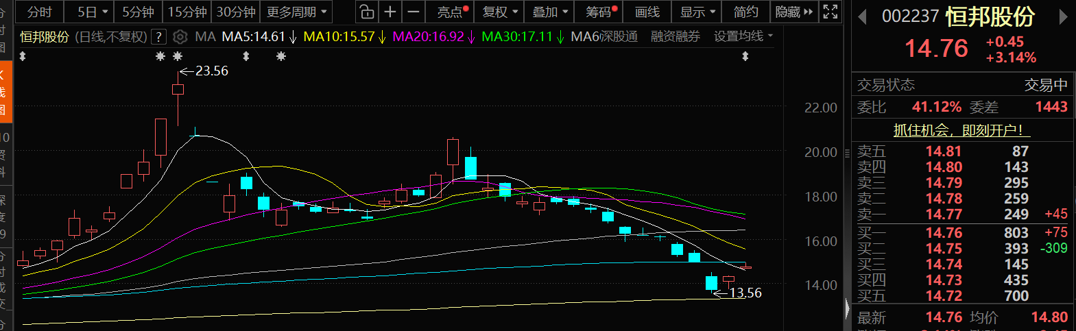 3月25日,恒邦股份股价出现上涨,截至25日10:04分,恒邦股份涨3.14%,报14.76元/股。