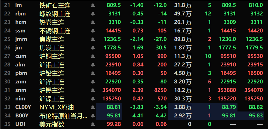 截至3月25日11:35分,部分期货午间行情: