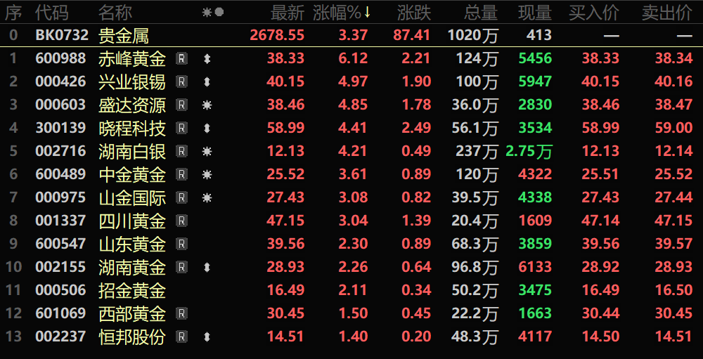 贵金属股市亦跟着期货的上涨而走强,截至3月25日收盘,贵金属板块涨3.37%,个股方面:赤峰黄金涨6.12%,兴业银锡、盛达资源、晓程科技、湖南白银以及中金黄金等涨幅居前。