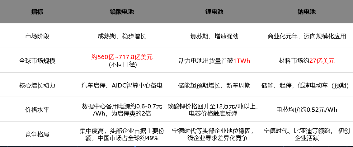 2025年行业格局:锂电主导、钠电爆发、铅酸稳存