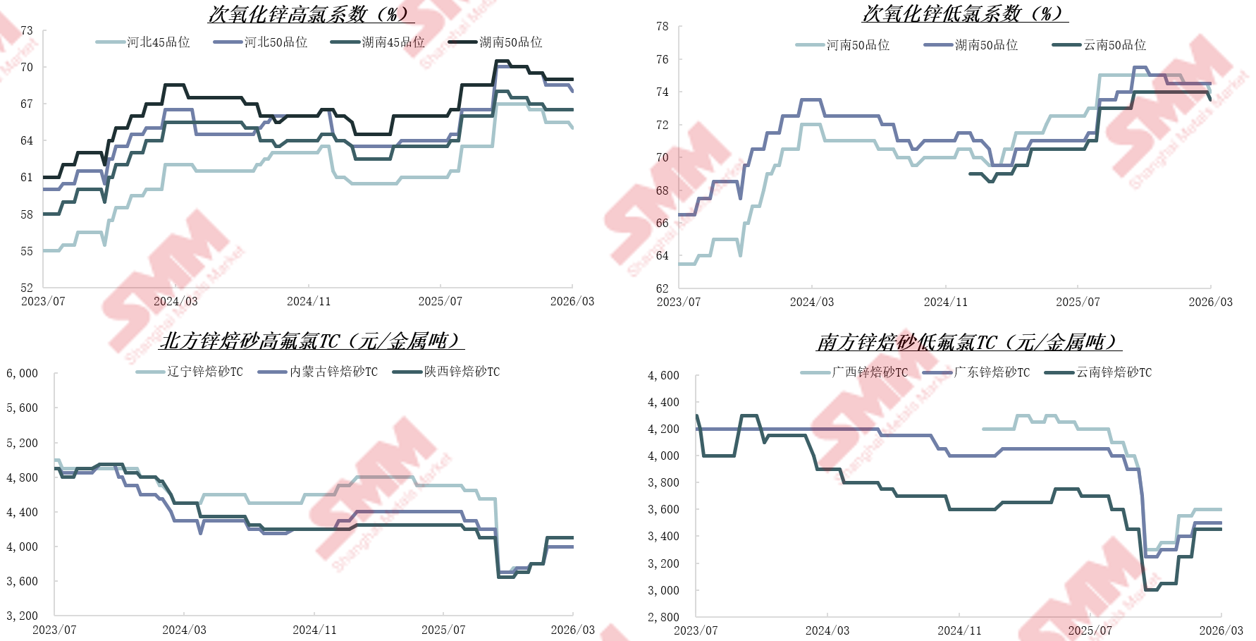 进入 2026 年以来,前两个月次氧化锌、再生锌焙砂行业开工率及产量出现明显下滑。主要原因包括:原料供应严重短缺,电炉灰、高炉灰等含锌固废供给受限,高品位原料稀缺,跨区域流通及回收体系尚不完善;环保与能耗政策趋严,危废管理、排放及能耗标准持续抬高生产门槛;加工利润微薄甚至出现倒挂,企业生产意愿偏弱;叠加部分产能优先自用等因素,共同导致行业整体产能未能充分释放。