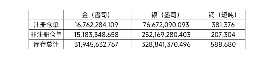 2026年3月24日COMEX金属库存