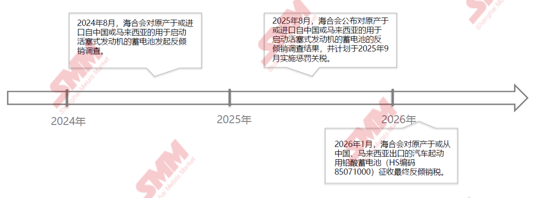 据悉,自2024年8月,海合会国际贸易反损害行为技术秘书局发布公告称,应三家企业(阿曼Reem Batteries andPowerappliances Company、卡塔尔Al Shabib Battery Factory(Q Power)、沙特Middle East Battery Company)提交的申请,对原产于或进口自中国或马来西亚的用于启动活塞式发动机的蓄电池(electric accumulators used for starting pistonengines)发起反倾销调查。