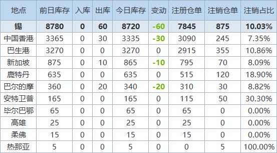 》查看更多金属库存信息