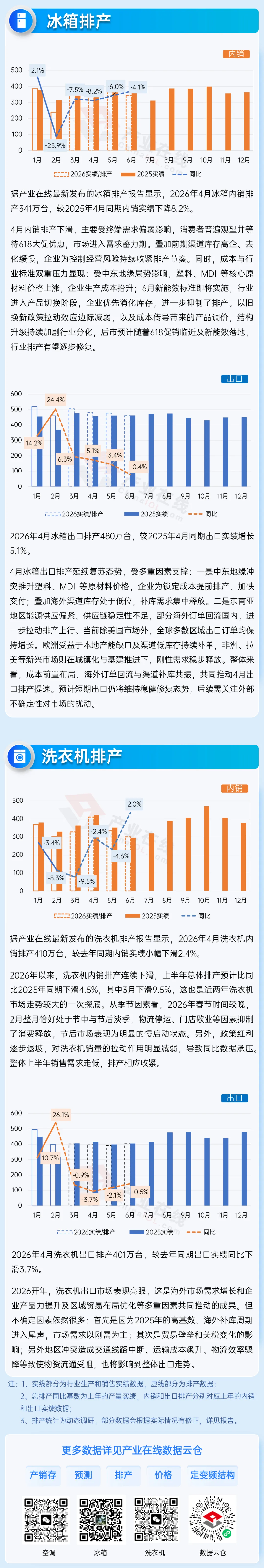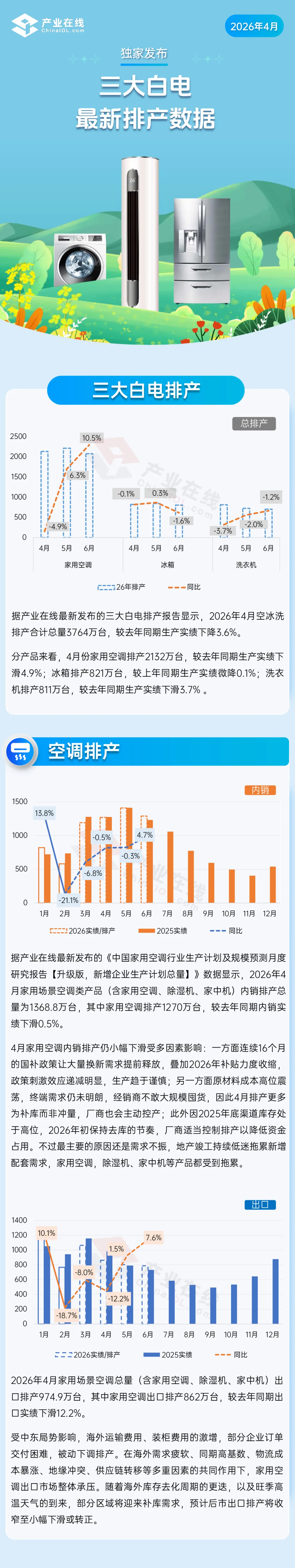 据产业在线发布的三大白电2026年4月排产数据显示: