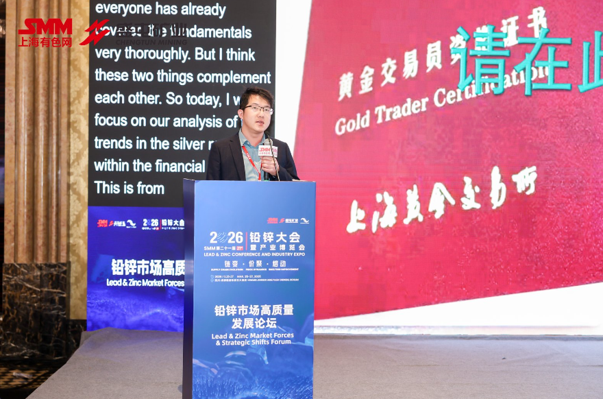 在由上海有色网信息科技股份有限公司(SMM)主办的2026 SMM(第二十一届)铅锌大会暨产业博览会-铅锌市场高质量发展论坛上,河南左期佑实产融基地资管部总经理 李喜唱围绕“2026套期保值与白银趋势分析”的话题展开分享。