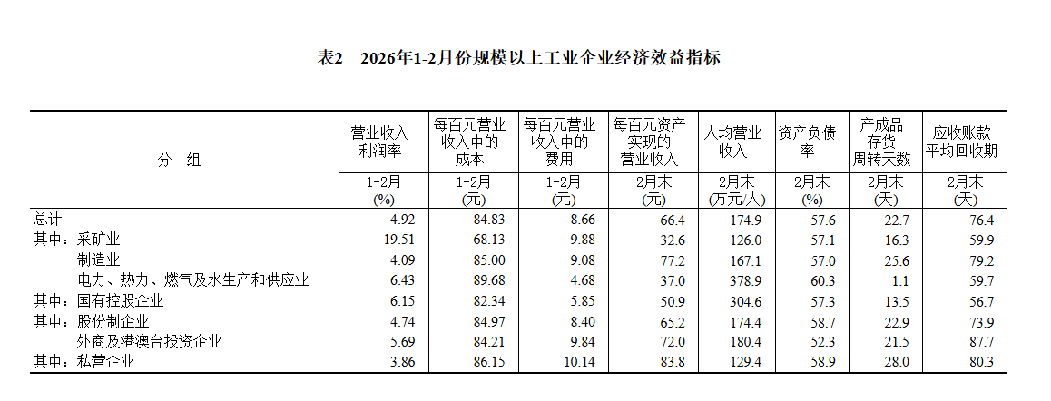 ——国家统计局工业司首席统计师于卫宁解读2026年1—2月份工业企业利润数据