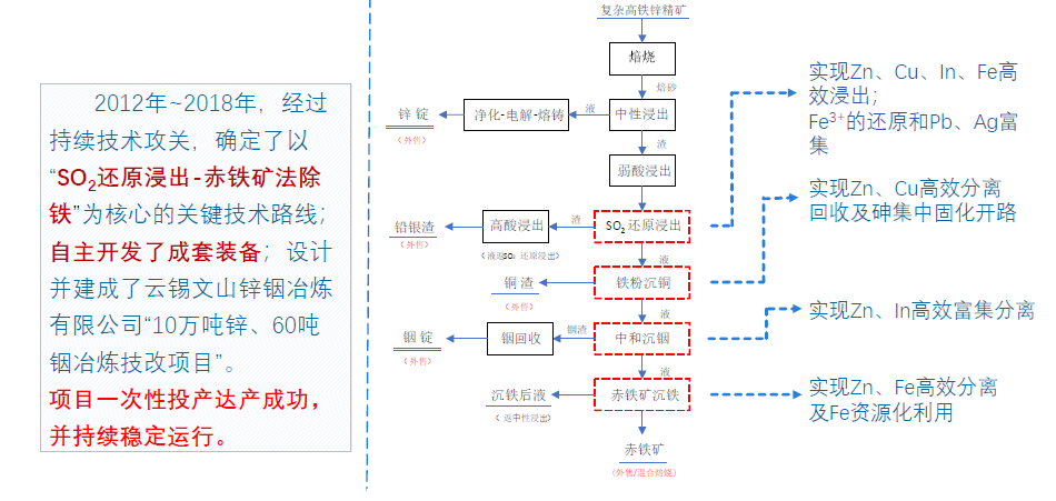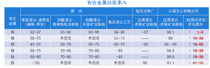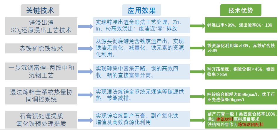 Zn、In、Cu、Pb、Ag有价金属回收率高,渣减量化铁元素资源化,能耗降低业内领先,智能化控制引领行业。