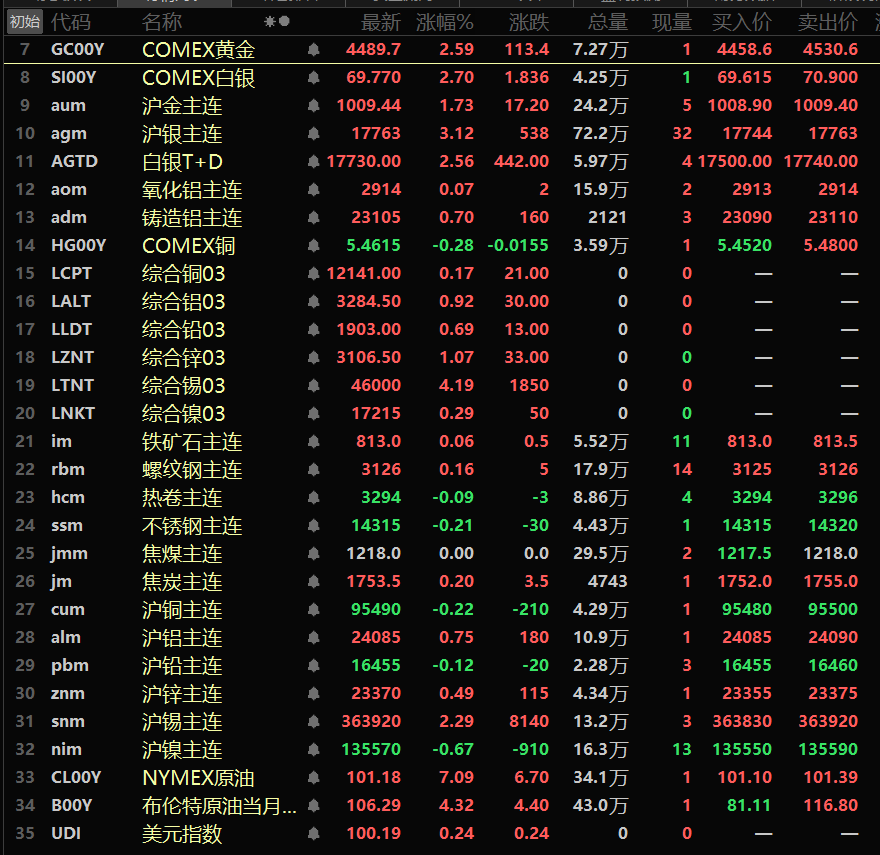 金属市场方面: