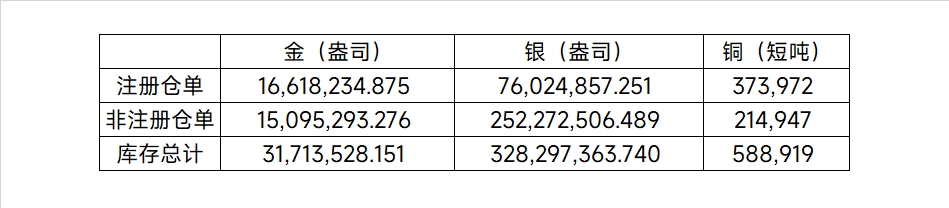 2026年3月26日COMEX金属库存