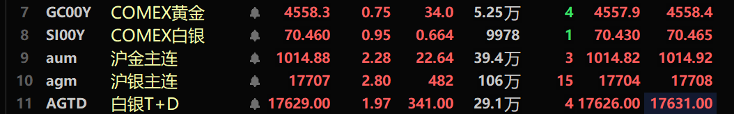 美元指数亚盘交易时段走软,支撑贵金属走强,不过,能源价格高企引发了市场对通胀升温的担忧,进而使得市场对美联储的降息预期降温,限制贵金属的涨幅。此外,中东地缘冲突持续升级推升市场避险情绪,以及外盘贵金属3月27日均涨逾2%等带动内盘贵金属3月30日期股联袂拉升,截至3月30日15:19分左右,COMEX黄金涨0.75%,报4558.3美元/盎司;沪金主连涨2.28%,报1014.88元/克;COMEX白银涨0.95%,报70.46美元/盎司;沪银主连涨2.8%,报17707元/千克;白银T+D涨1.97%,报17629元/千克。