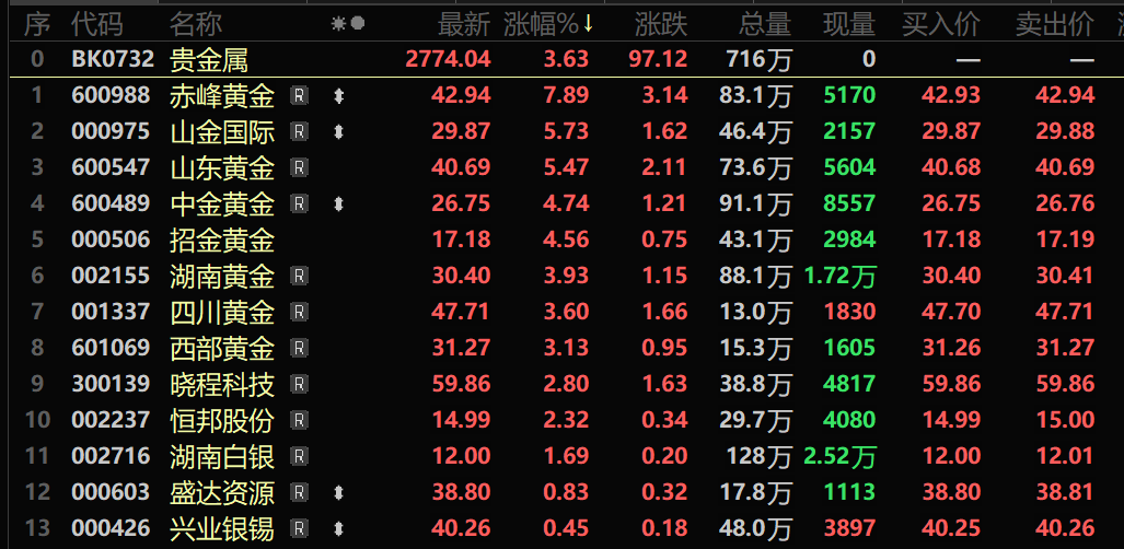 贵金属股市方面,截至3月30日收盘,贵金属板块涨3.63%,个股方面:赤峰黄金涨7.89%,山金国际、山东黄金、招金黄金以及中金黄金等涨幅居前。