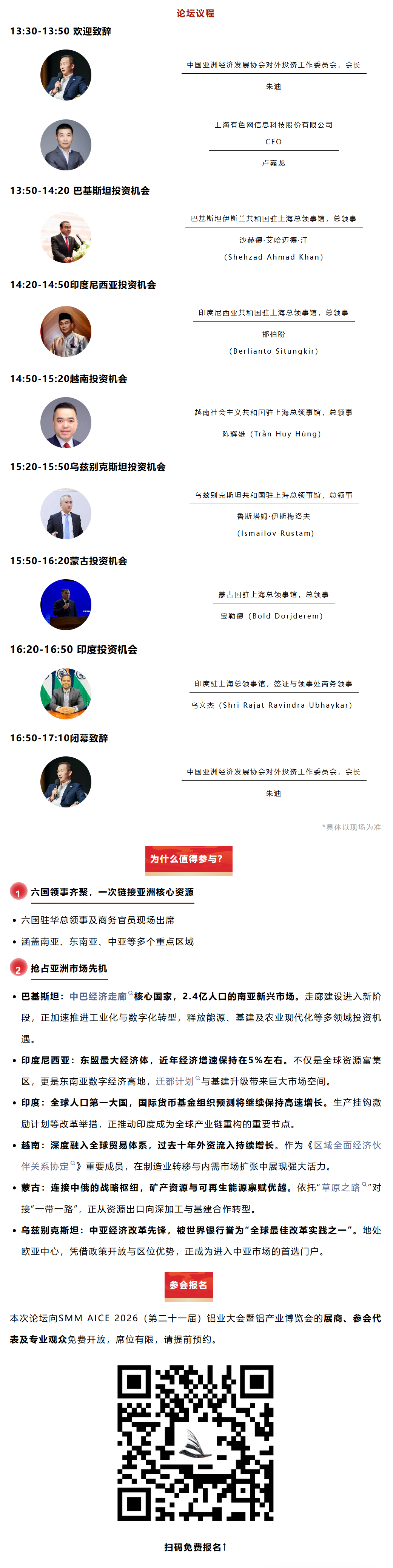 “亚洲投资发展合作论坛”免费开放。仅有少量赞助席位,助力企业抢占国际合作先机。