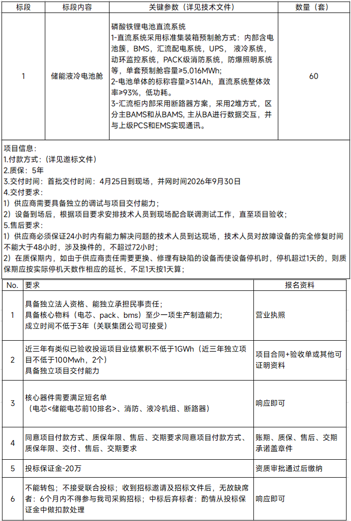 2026年3月30日,浙江华昱欣科技有限公司100MW/300MWh储能液冷电池舱项目发布招标公告,采购60套储能液冷电池舱,并网时间为2026年9月30日。