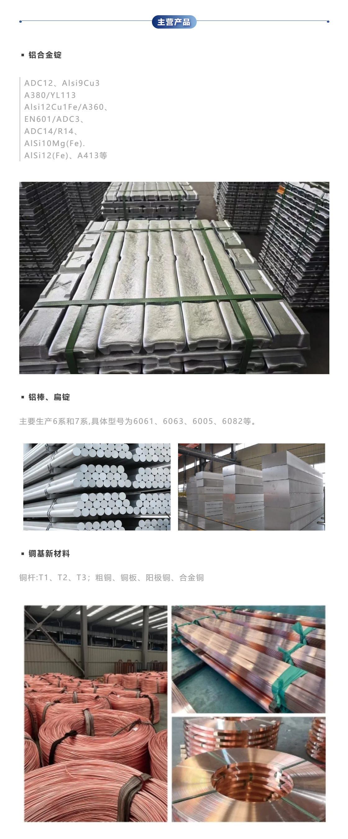 新太合金专业从事再生铝原料回收加工,是集再生铝合金研发、生产、销售为一体的大型企业,主营铝棒、合金铝锭、扁锭、铝水直供。