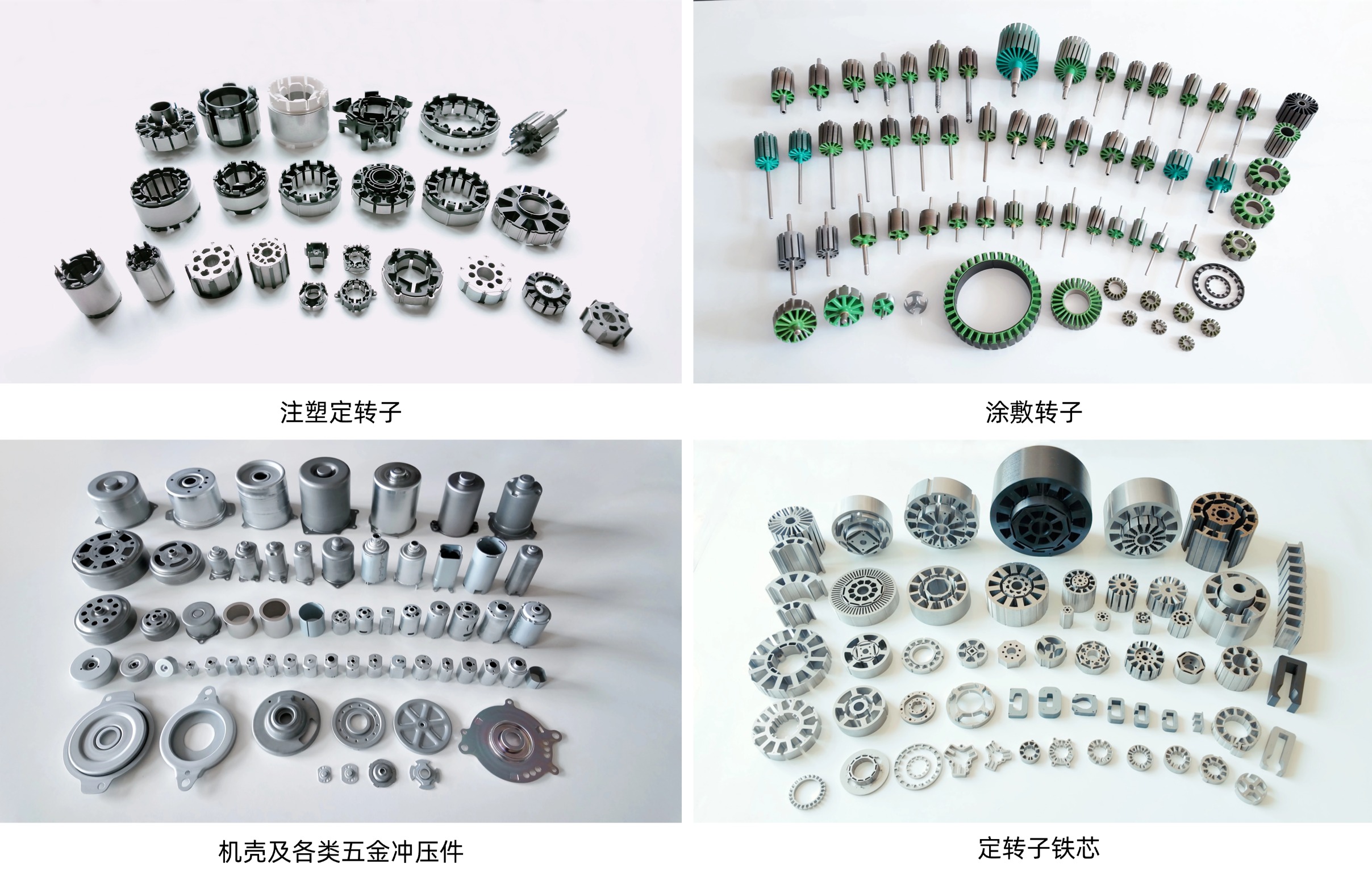 公司致力于电机转定子及电机机壳产品的开发与生产,不断引进先进的生产加工设备,现拥有多台日本YAMADA、日本AIDA精密高速冲床,并自行研发制造了转子自动入轴设备及自动涂敷设备。