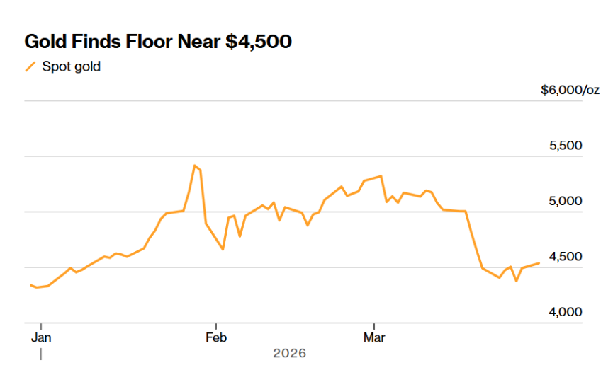 黄金价格,可谓正在被庞大的逢低买盘从“技术性熊市边缘”往回拉。最直接的证据无疑是现货金价在3月下旬一度跌至四个月低点4097.99美元,并失守200日均线,但随后在3月27日单日反弹逾3%,到3月30日又回到4500美元以上的重要支撑位置。