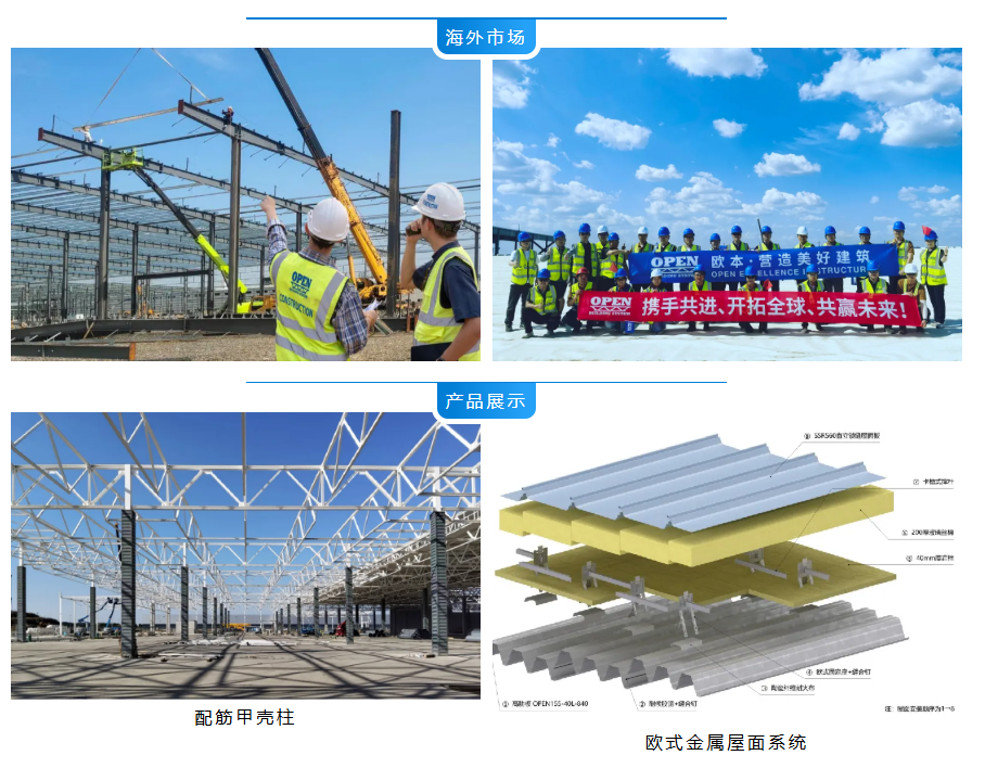 欧本以结构创新为特色,致力于为客户提供更具性价比的建筑结构解决方案和产品。在上海金山、江苏南通、江苏启东、湖北宜昌以及印尼建有生产基地,生产各种钢结构、桁架、屋面板、墙面板、以及甲壳框架结构等创新结构产品。