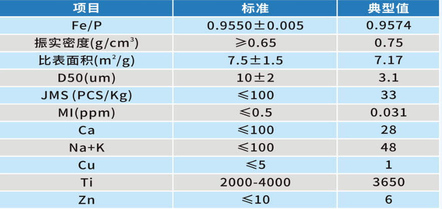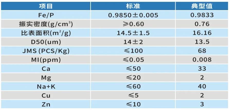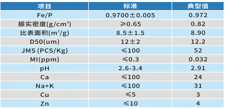 磷酸铁,白色、灰白色单斜晶体粉末,具有能量密度高、循环寿命长、低温性能强、安全性能好等特性。目前有HT01、HT02、HT03、HT04、HT05五款磷酸铁产品,涵盖不同应用场景与性能需求,形成丰富的产品矩阵。