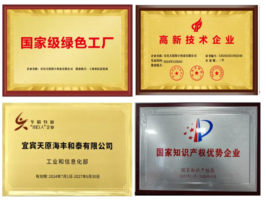 海丰和泰依托天原集团在化工行业深厚的底蕴及“一体两翼”产业布局,形成了以钛白粉、磷酸铁为主的两大核心产业格局,实现发展的长足跨越,构建起世界领先的“氯-钛-锂电”一体化绿色循环经济全产业链。获得国家级高新技术企业、国家级绿色工厂、国家级绿色设计产品、国家专精特新小巨人企业,四川省专利奖、四川省企业技术中心等荣誉称号,连续四年被评为能效领跑者标杆企业。