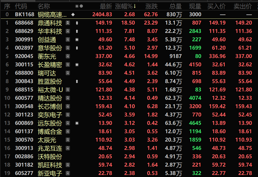 AI服务器热度不减,不少产业链企业迎来爆单;英伟达 GTC 确认未来多年 “铜 + 光混合互连”;2月中国铜箔企业的开工率受春节因素影响环比下降,但同比上升明显,预计3月开工率有望超9成;多地算力政策的落地,以及不少头部云端服务供应商加码算力采购等将提升数据中心内部高速连接需求,叠加部分市场资金的流入等带动铜缆高速连接概念板块走强,截至4月1日收盘,铜缆高速连接概念涨2.68%,个股方面:鼎通科技涨18.5%,华丰科技、创益通、意华股份、蘅东光、长盈精密、瑞可达以及胜蓝股份等涨幅居前。