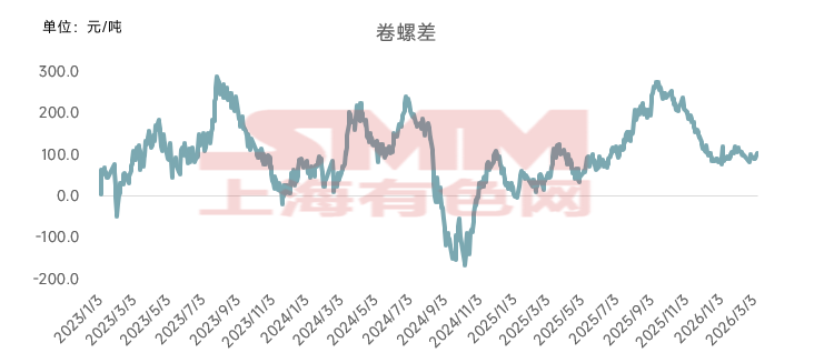 单就长流程生产工艺而言,螺纹与热卷的生产原料均为铁水,仅在终端轧制工艺上存在不同,所以从理论上来说,卷螺价差就是二者的生产成本差异。按加工费用测算,热卷的加工成本大约高出螺纹80-120元/吨左右,市场也将这一区间视为卷螺差运行的正常区间。但由于下游终端应用不同,二者需求节奏时常存在分化,导致卷螺实际价差会逐渐偏离理论区间,品种间也会阶段性出现强弱切换。