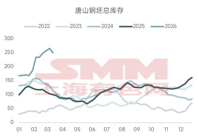 但需要注意的是,目前唐山钢坯总库存为250.23万吨,远高于历年同期水平,整体库存压力大于螺纹,需警惕钢坯需求不及预期情况下,市场砸价导致螺坯差扩大的情况。