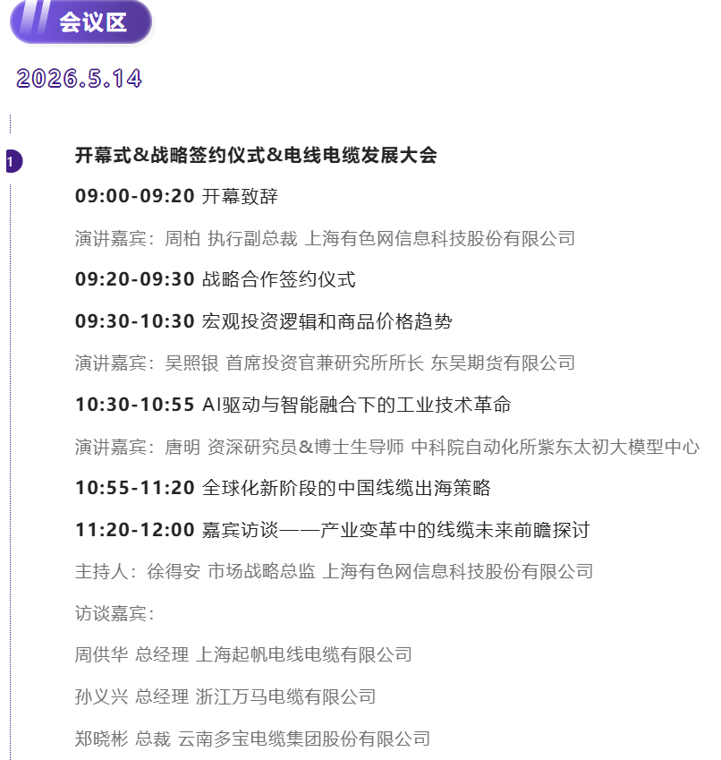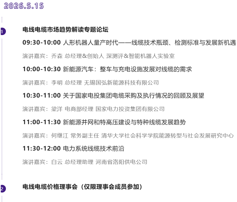 会议将围绕原料价格走势、下游市场需求、技术创新、品牌建设及线缆出海等行业热点议题,邀请专家与龙头企业代表分享研判,为行业提供趋势洞察与决策参考。