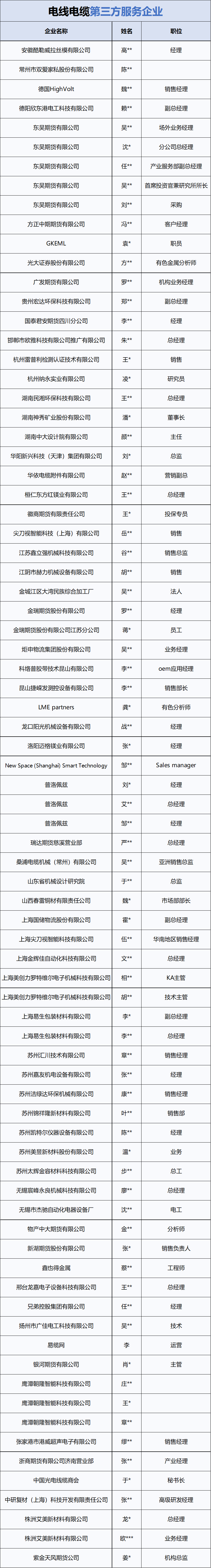 起帆电缆、坤一电缆、森源电缆、三五电缆、汇力电缆、万马股份、鑫海高导、宸峰永良、新煌集团、东吴期货、国嘉导体、鸿星美科、东峰电缆、奇佳实业、北京首钢铁合金、鑫宏业、鹰潭朝隆、美创力、久立电气、鑫梓能科、欣东港电工、航天电工、国储物流、洁绿达、金辉佳、鑫电铝合金、港威超声、锦锐乾源等产业链知名企业已确认出席!覆盖线缆制造、材料、装备、经销及终端采购全链条!
