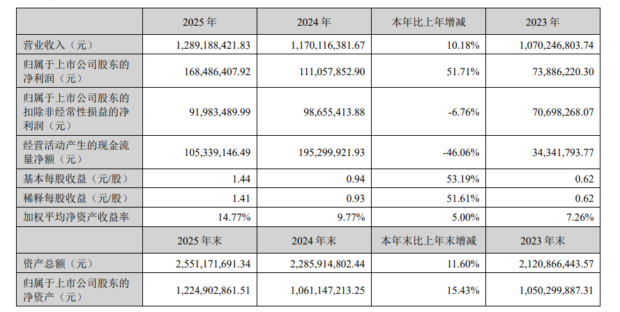 龙磁科技4月2日晚间公告的2025年年报显示:2025年,公司实现营业收入128,918.84万元,比上年同期增长10.18%;实现归属于上市公司股东的净利润16,848.64万元,同比增长51.71%。公司在汽车、变频家电领域销售收入持续增长,已成为上述领域全球领先的磁性材料供应商,具有较强的市场竞争力。公司持续加大研发力度,通过生产线技改提升,不断优化产品结构,并持续推进各项降本增效措施,永磁毛利率水平较上年同期进一步提高。公司将继续凭借良好的服务和优质的产品,与国内外知名厂商建立长期良好、稳定的合作关系。为客户提供满足个性化和多样化的产品和服务。