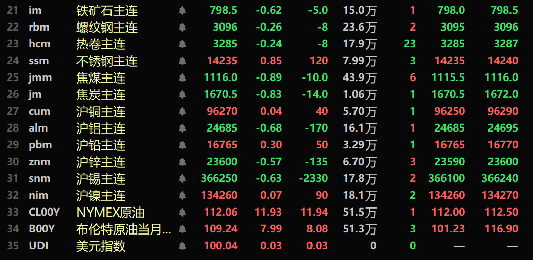 截至4月3日11:46分,部分期货午间行情: