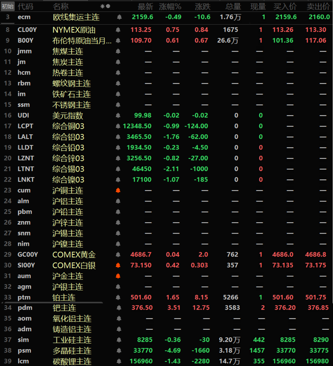 截至4月7日6:47分,隔夜收盘行情